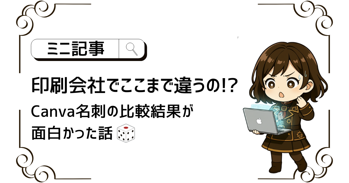 無料版Canvaで作った名刺データを、なんと7社の印刷会社に入稿して比較した記事です。